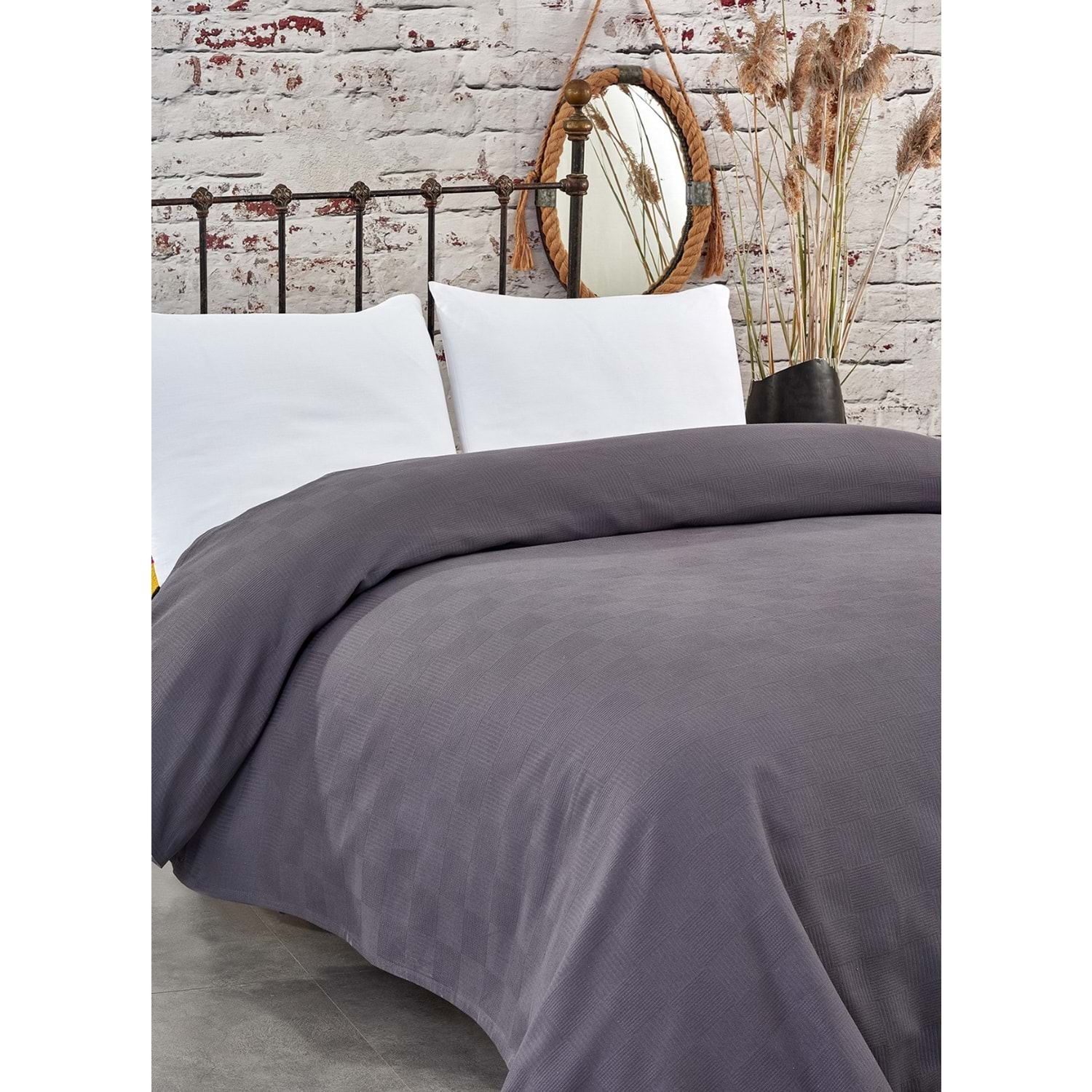 Komfort Home Çift Kişilik Dama Desen %100 Pamuk Pike / Antrasit