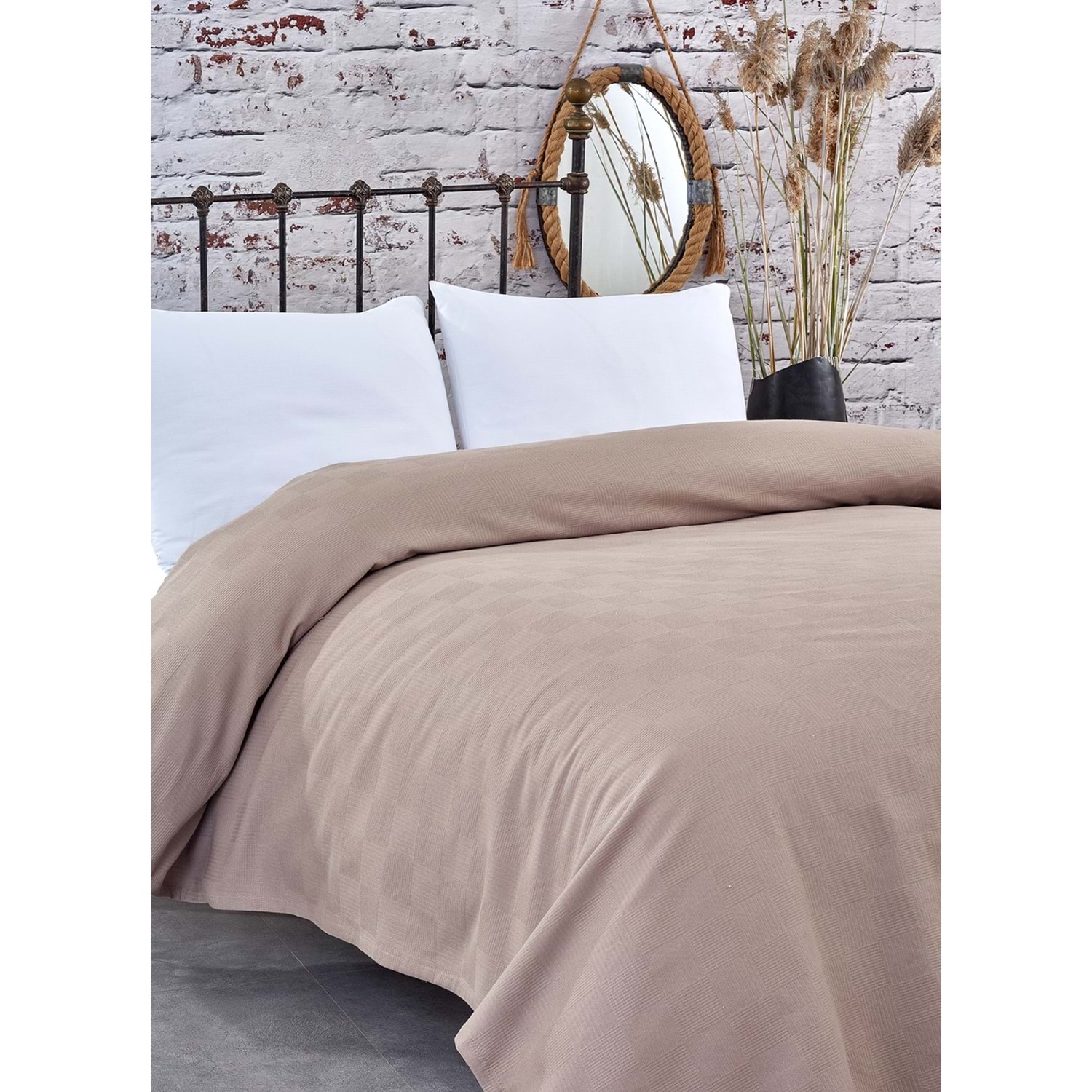 Komfort Home Tek Kişilik Dama Desen %100 Pamuk Pike / Sütlü Kahve